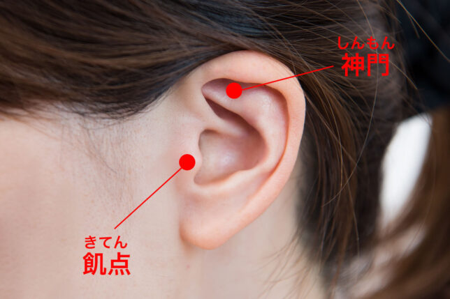 耳の上の方、Y字型に分かれた軟骨の間のくぼみにあります